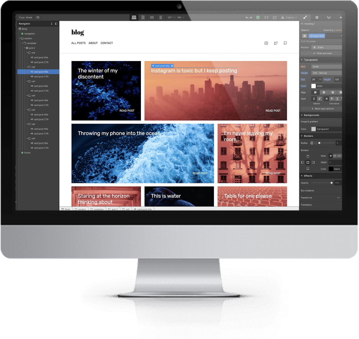 I build websites in Webflow where I can create responsive, powerful and fully custom websites. Plus, Webflow has an incredibly simple Content Editor for you and your team to edit website content quickly and easily.