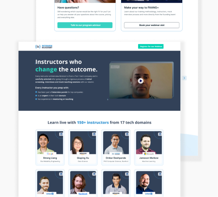 Webflow development of two pages for a company called Interview kickstart. The designs were provided by company's team. Converted them to Webflow pages. They are fully responsive.